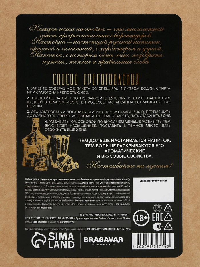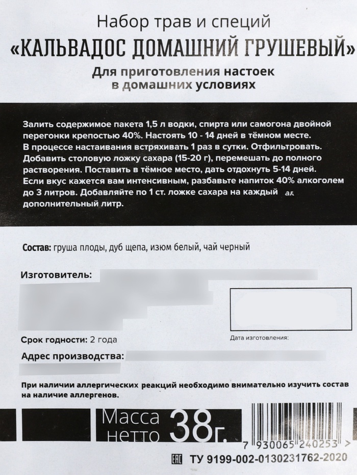 УЦЕНКА Набор для приготовления алкоголя «Кальвадос грушевый», набор трав и специй, штоф 10 фото