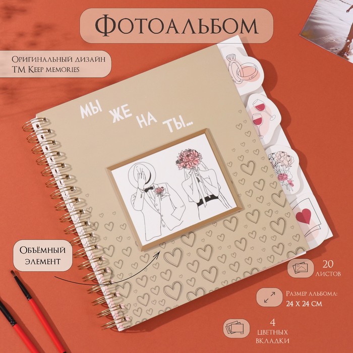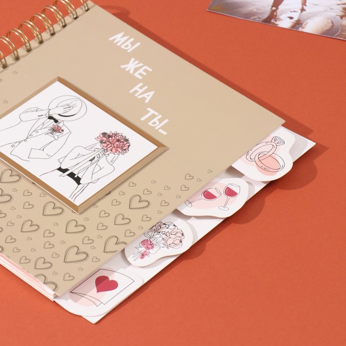 Фотоальбом на спирали 20 листов «Мы женаты», объёмный элемент и 4 вкладки, 24×24 см 9 фото