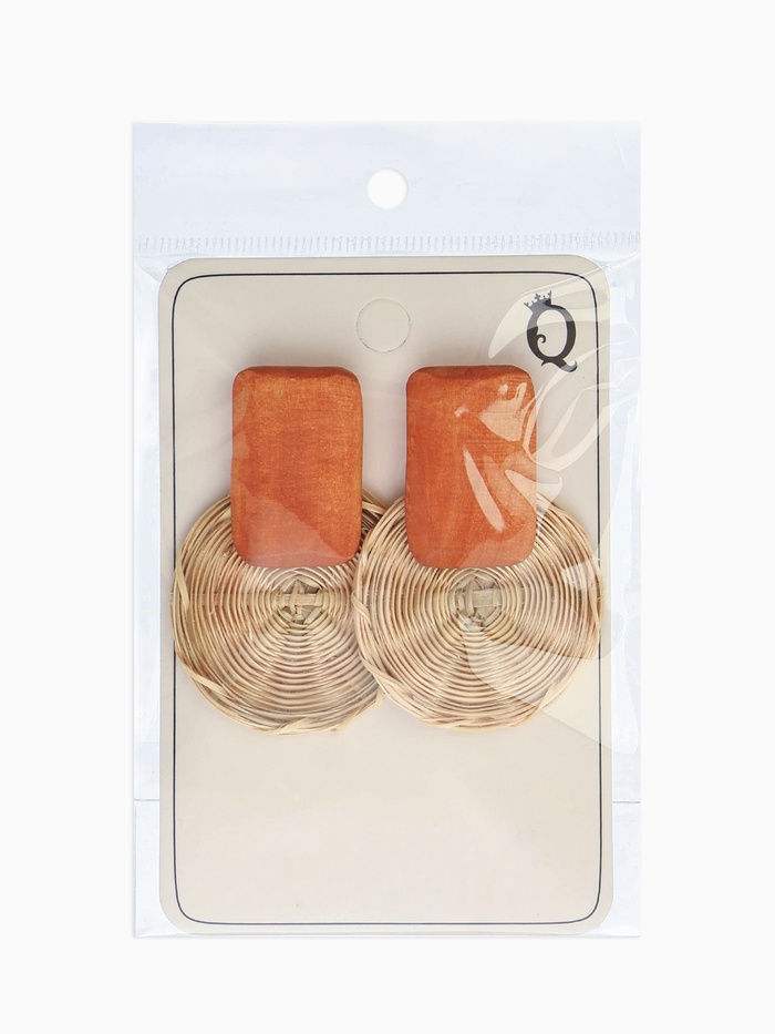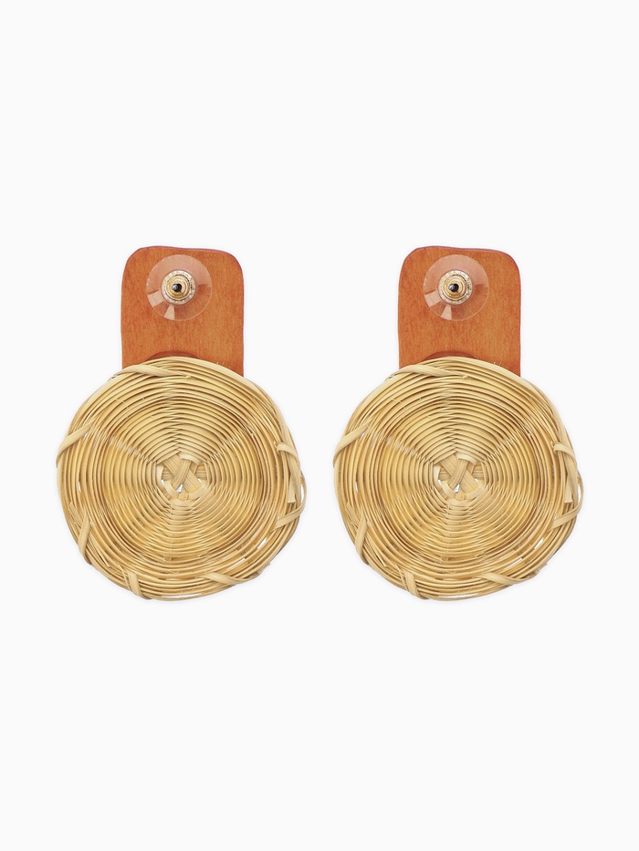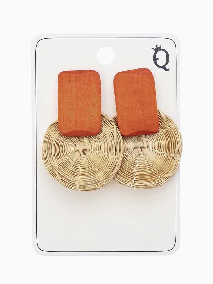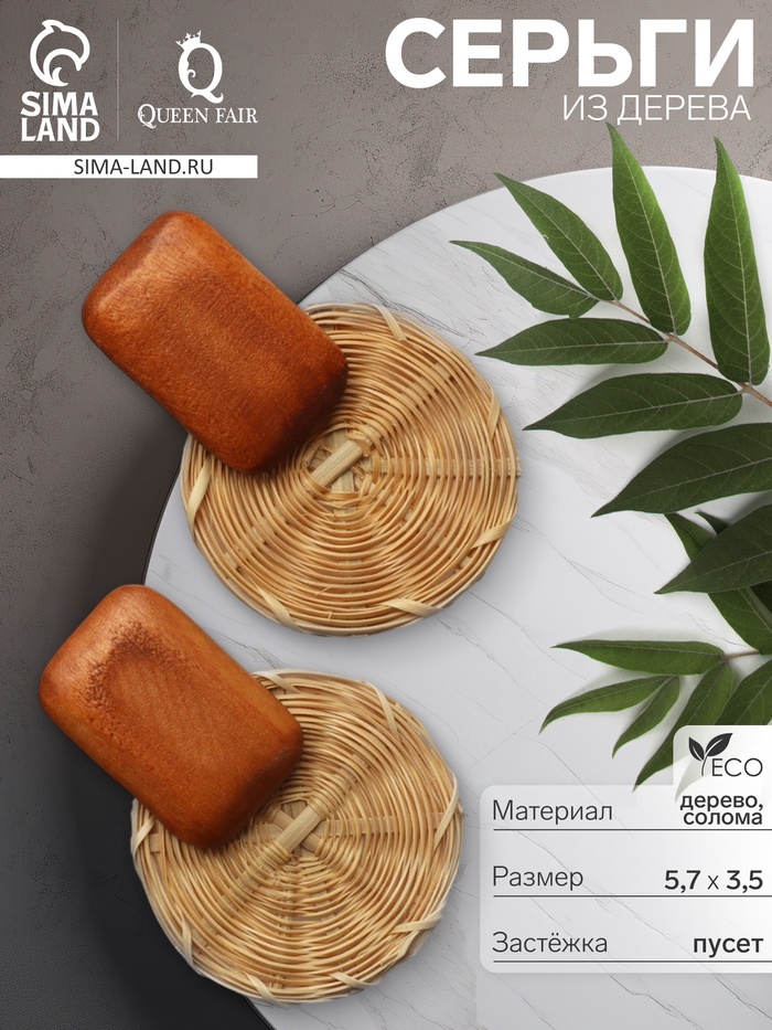 Серьги из дерева «Ваканда», стиль, плетёный диск, бежево-коричневые 7 фото