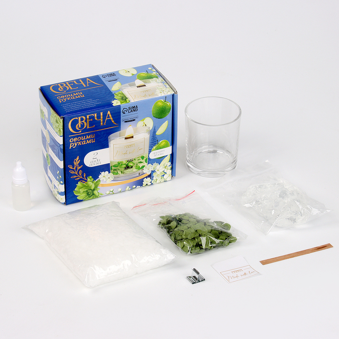 Свеча своими руками. Создание ароматической свечи с сухоцветами «Зеленое яблоко», набор для творчества 8 фото