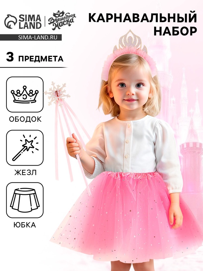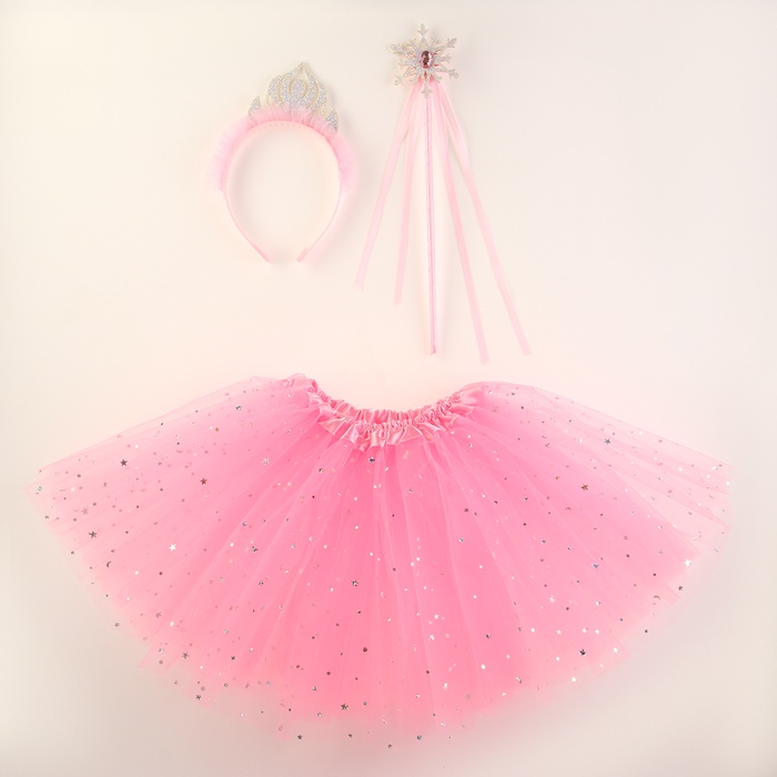 Карнавальный костюм «Принцесса» 3 предмета: юбка, ободок, жезл, розовый 6 фото