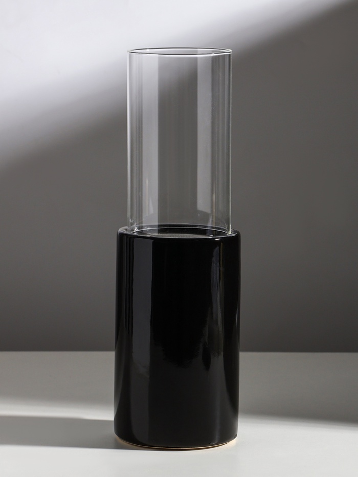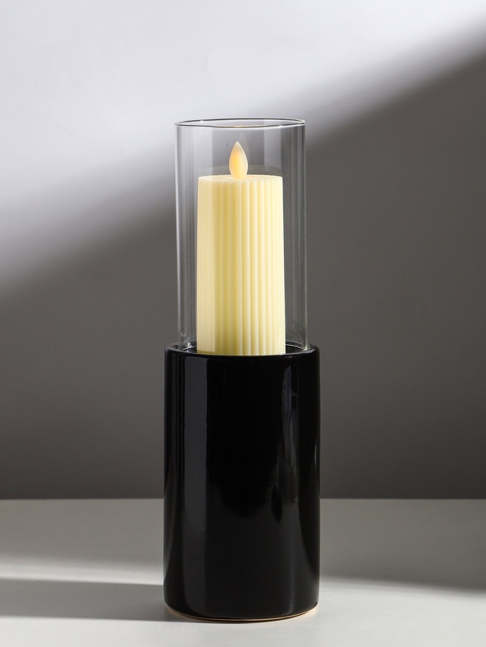 Подсвечник на 1 свечу «Хром», керамика, стекло, d=7.5 см, чёрный, 9.2×9.2×29.5 см 4 фото