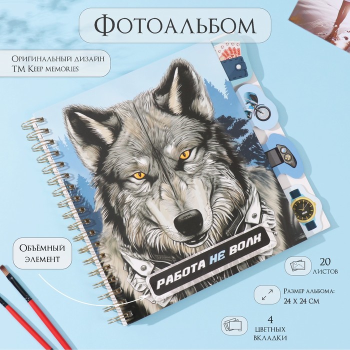 Фотоальбом на спирали 20 листов «Волк», объёмный элемент и 4 вкладки, 24×24 см 9 фото
