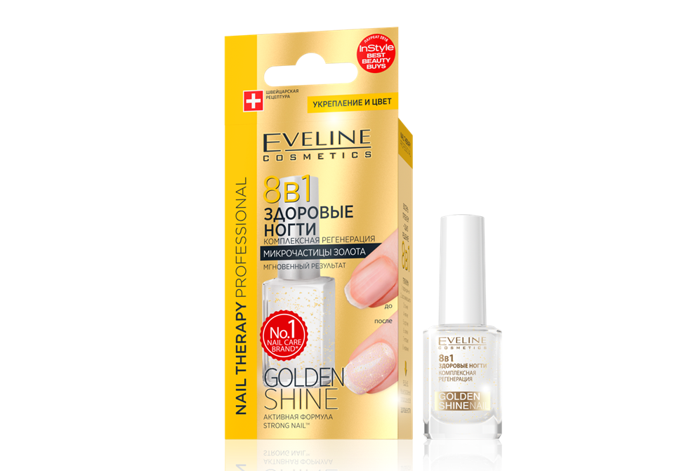 EVELINE Nail Therapy 8в1 Здоровые ногти Golden Shine Комплексная регенерация 12мл