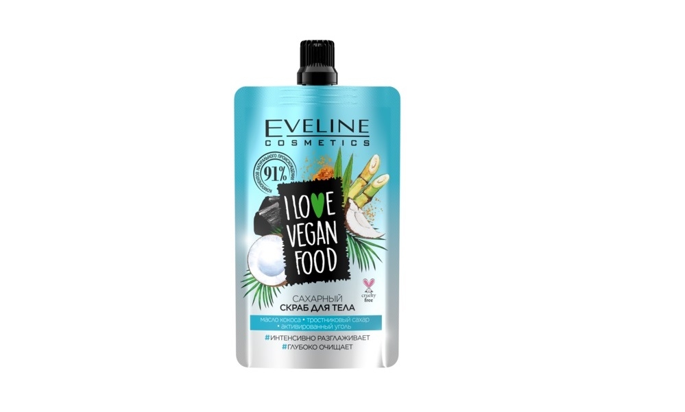 EVELINE I love vegan food Сахарный скраб для тела Масло кокоса, тросниковый сахар 75мл