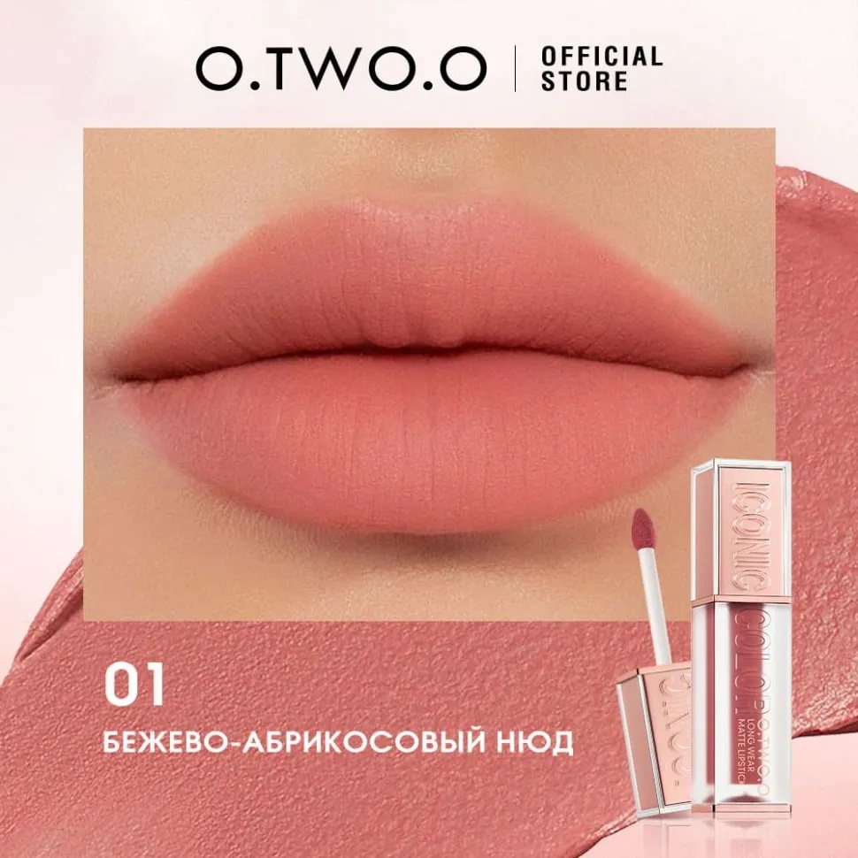 Матовая помада для губ O.TWO.O вельветовая #01 - Бежево-абрикосовый нюд 10 фото