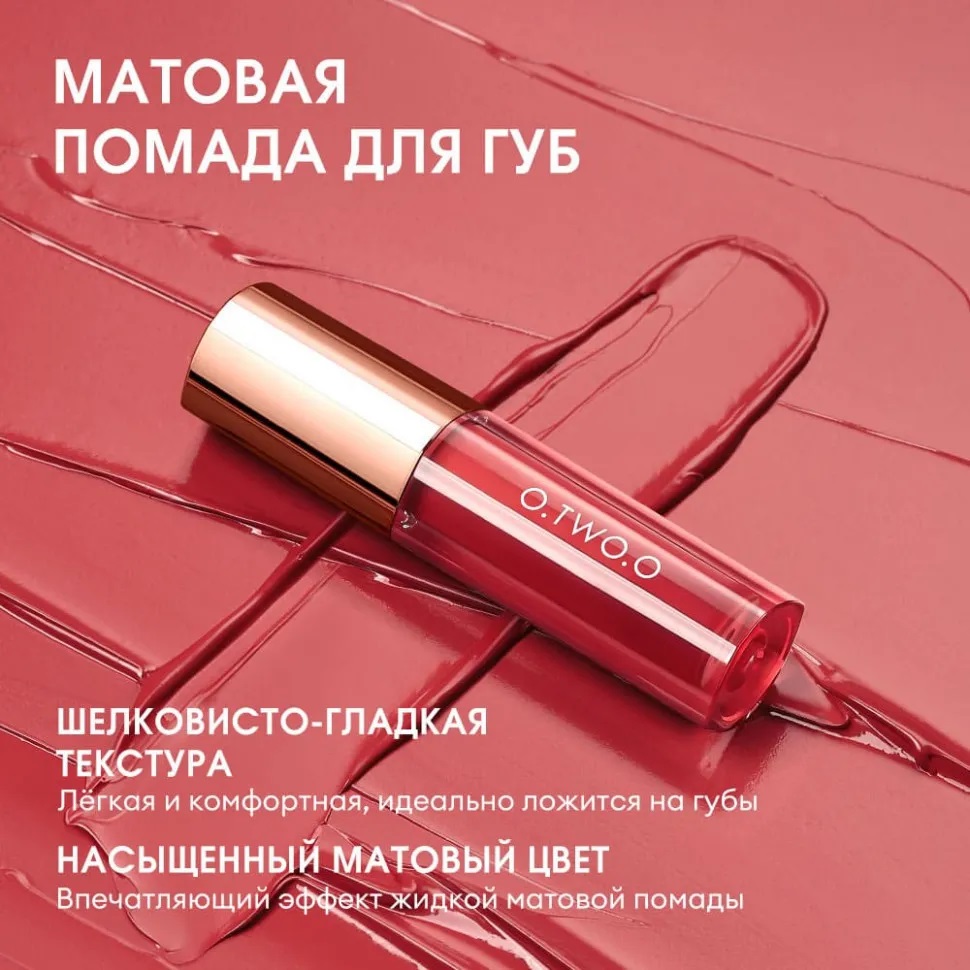 Матовая помада для губ O.TWO.O вельветовая #08 - Розовый 10 фото