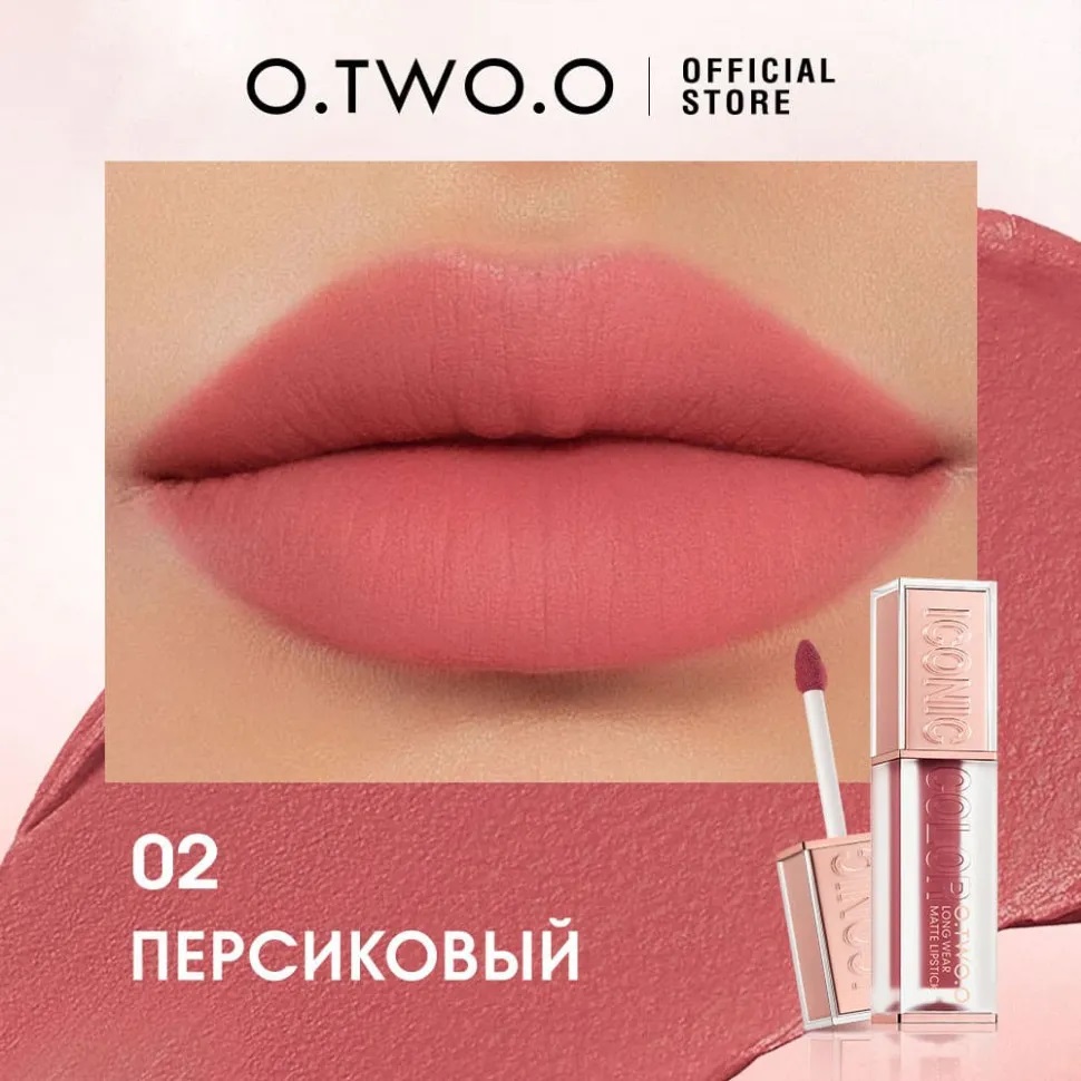 Матовая помада для губ O.TWO.O вельветовая #02 - Персиковый 10 фото