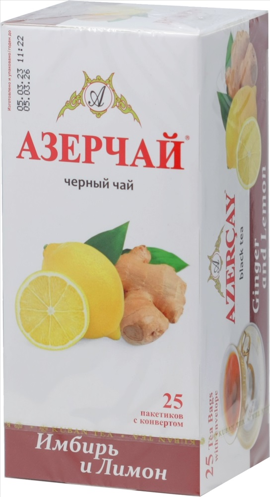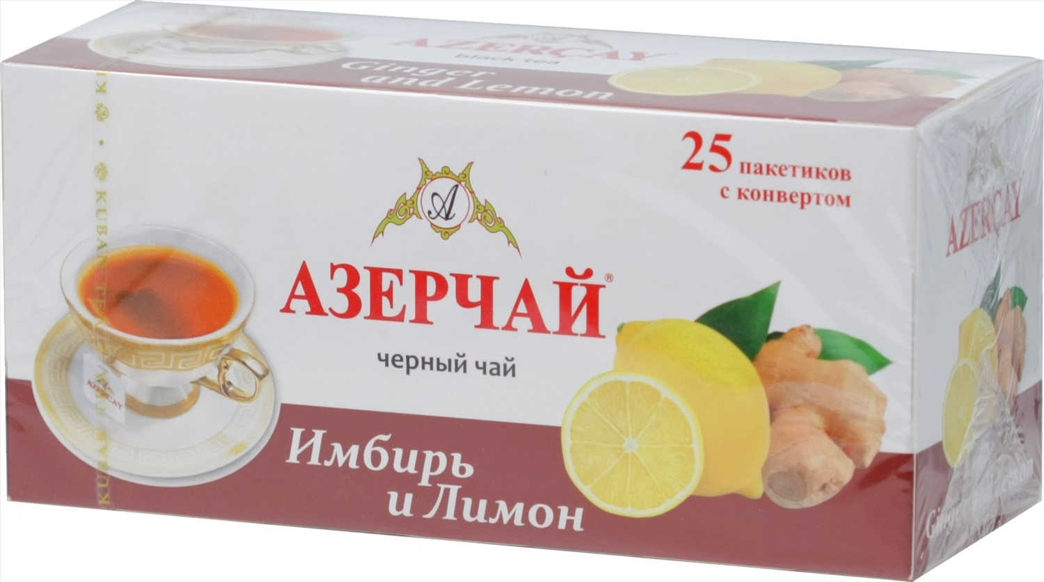 Azercay. Черный с имбирем и лимоном карт.упаковка, 20 пак. 2 фото