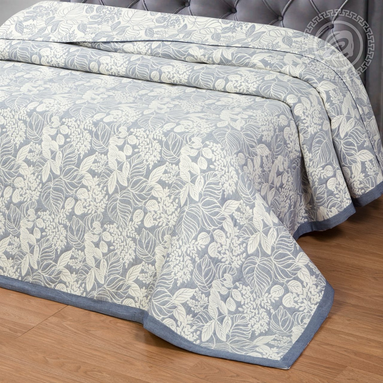 Покрывало жаккардовое Танец цветов сине-серое 5 фото
