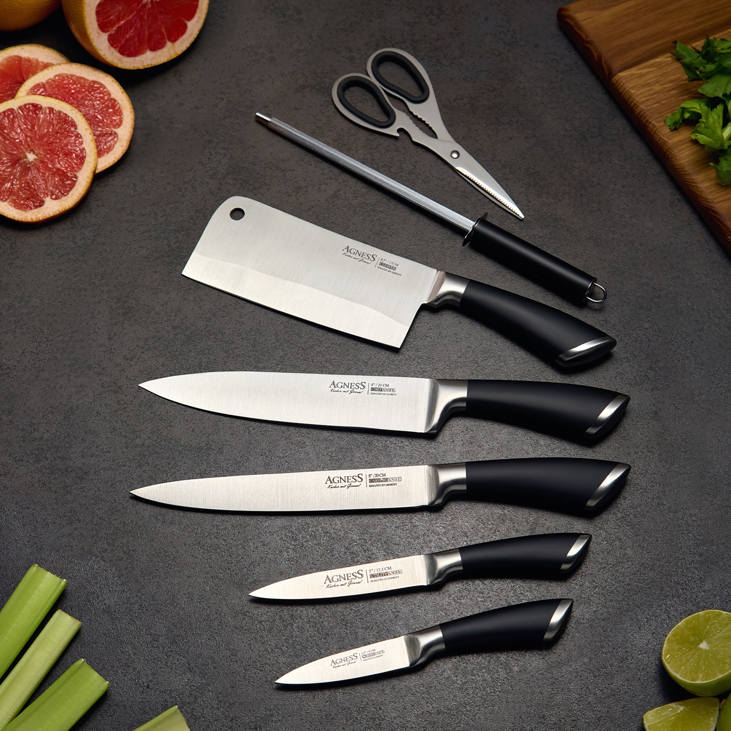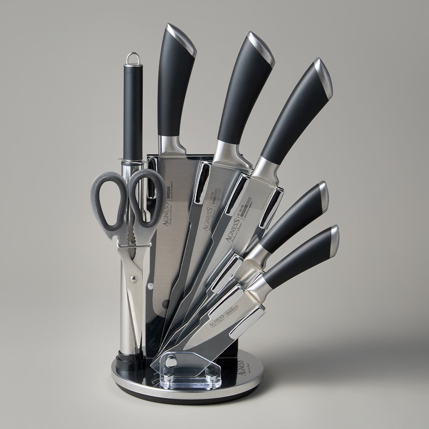НАБОР НОЖЕЙ AGNESS НЖС НА ПЛАСТИКОВОЙ ВРАЩАЮЩЕЙСЯ ПОДСТАВКЕ 8 ПР. (КОР=6НАБОР.) 9 фото