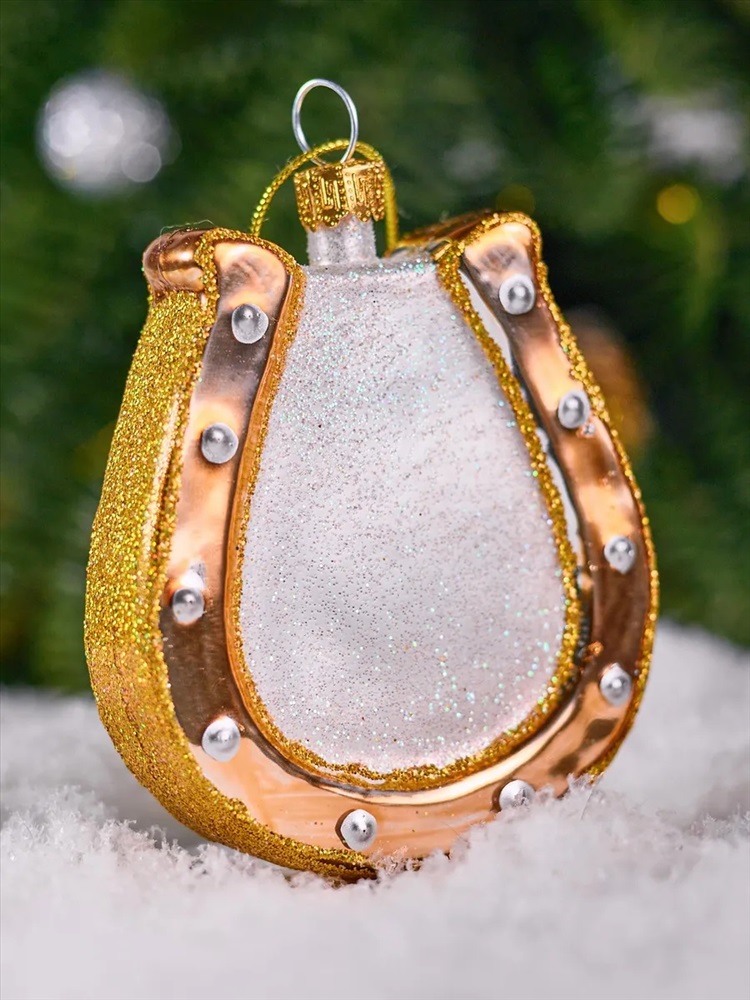 Елочная игрушка стеклянная декорированная "Подкова" 2 фото