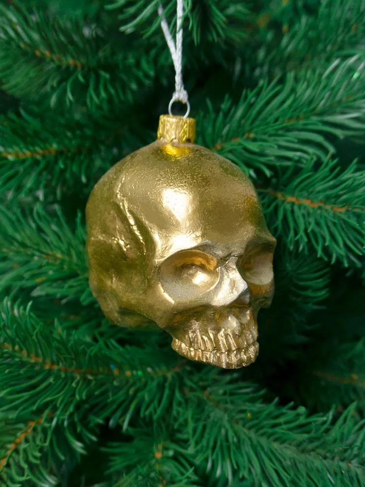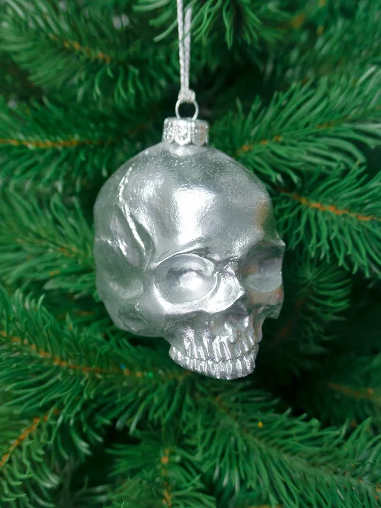 Елочное украшение из ГИПСА  "Череп серебряный"