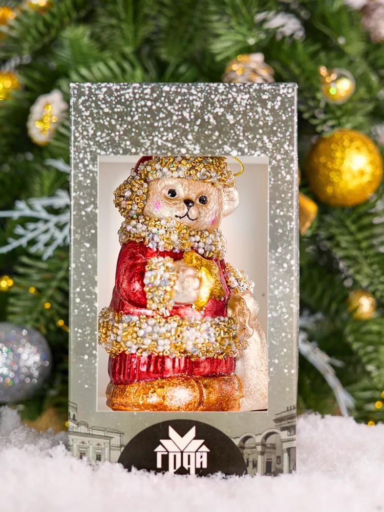 Елочная игрушка стеклянная декорированная "Сказочный медвежонок" 2 фото