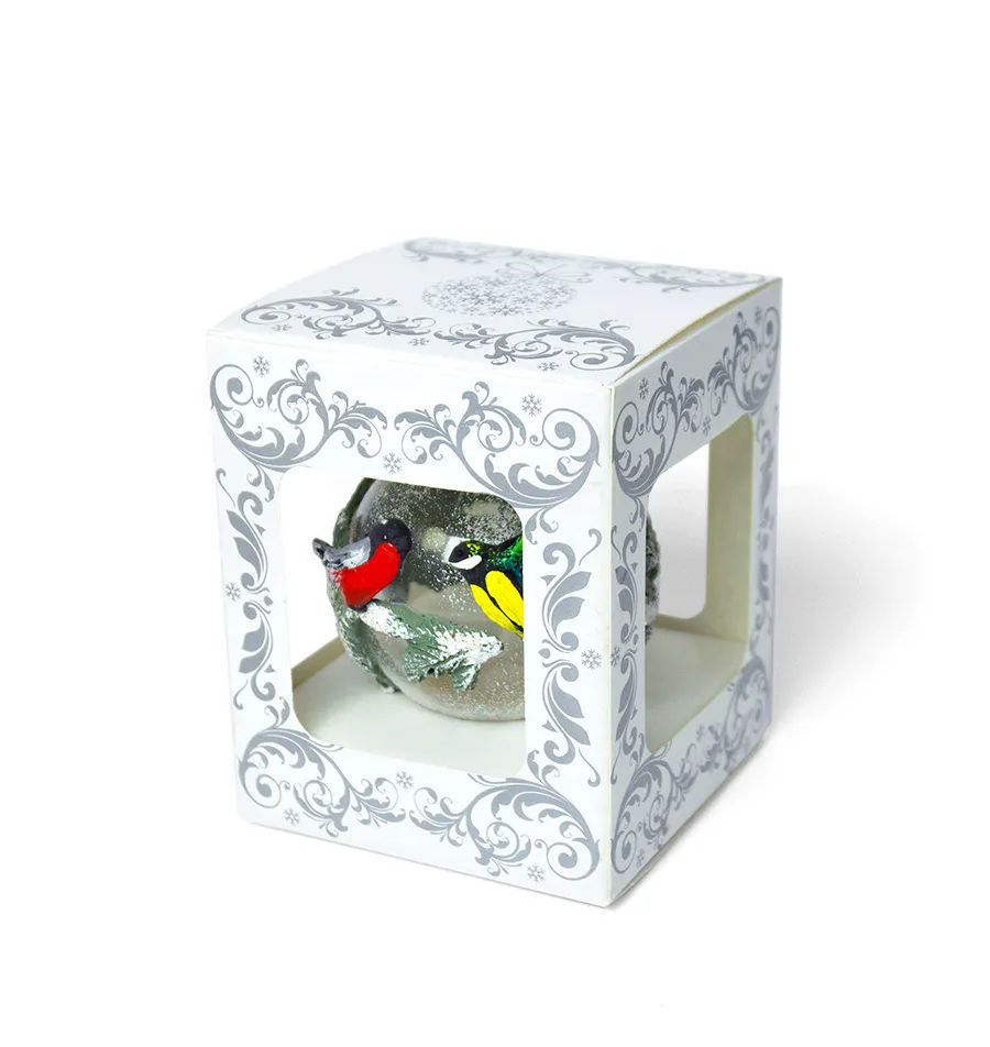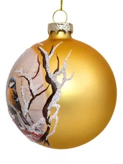 Елочный шар декорированный стеклянный "Две синички" 2 фото