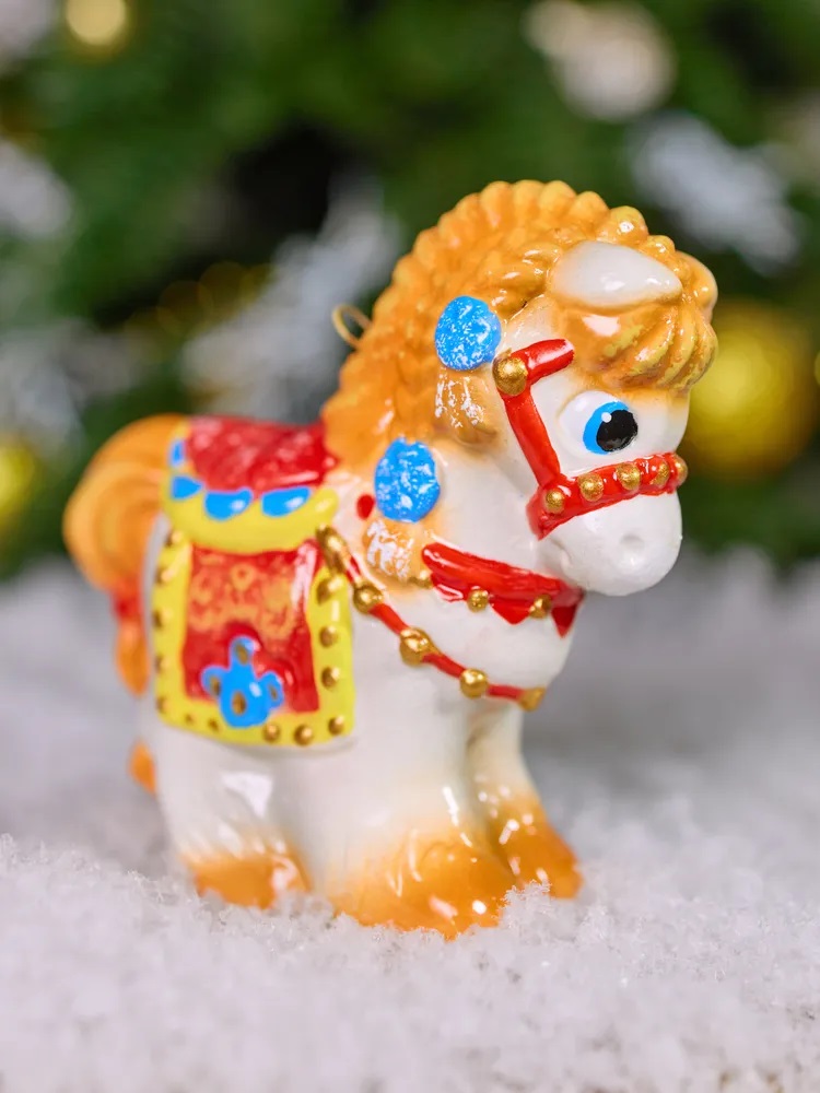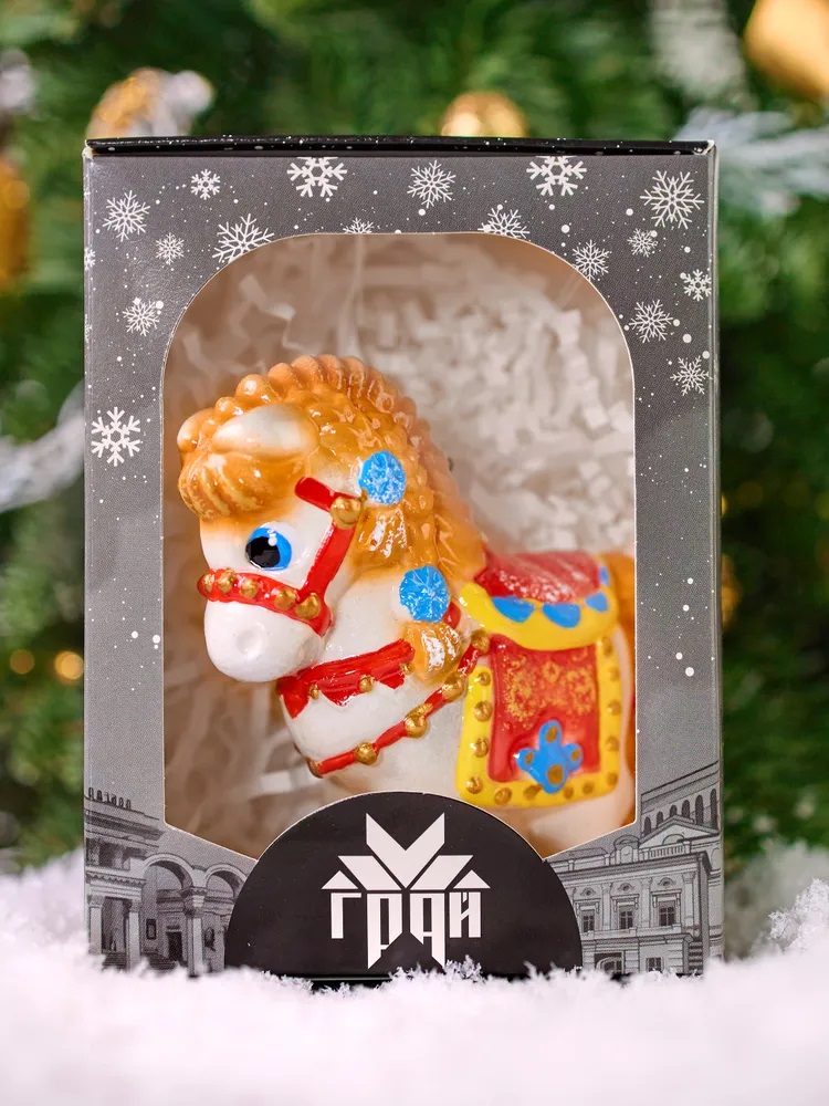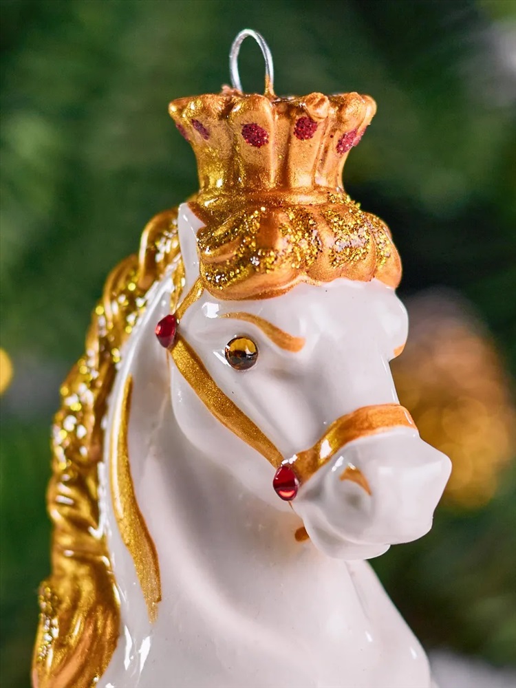 Елочная игрушка стеклянная декорированная "Цирковая лошадка" 2 фото