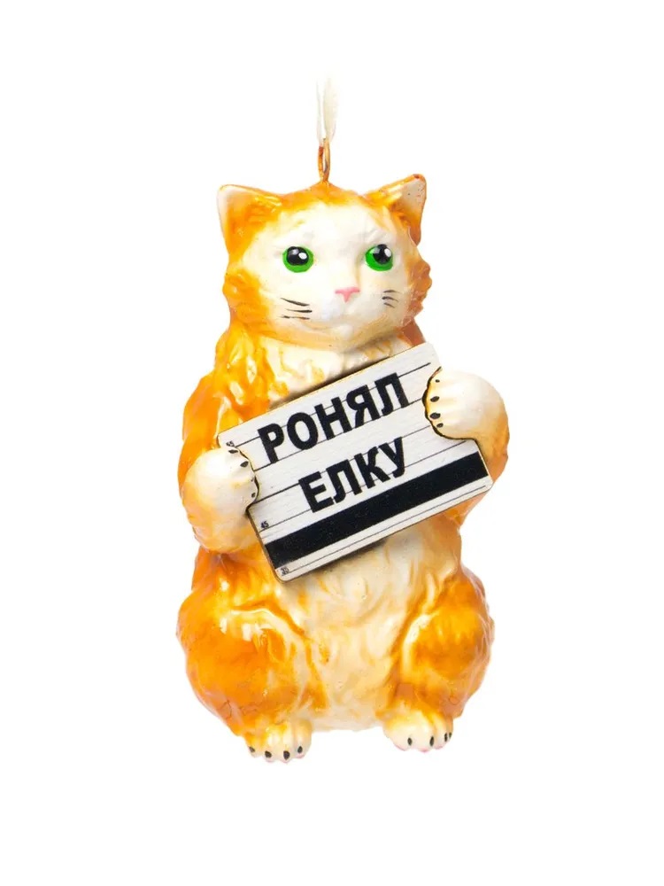 Елочное украшение из ГИПСА  "Котенок с клубочком"