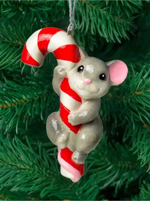 Елочное украшение из ГИПСА  "Мышь с конфетой"
