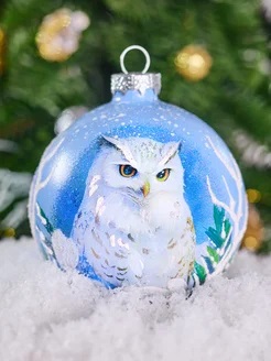 Елочный шар декорированный стеклянный "Совушка" 2 фото