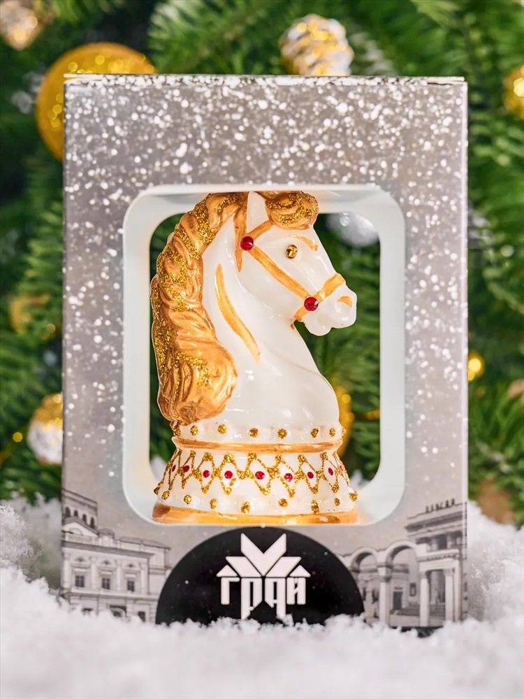 Елочное украшение из ГИПСА  "Шахматный конь" 6 фото