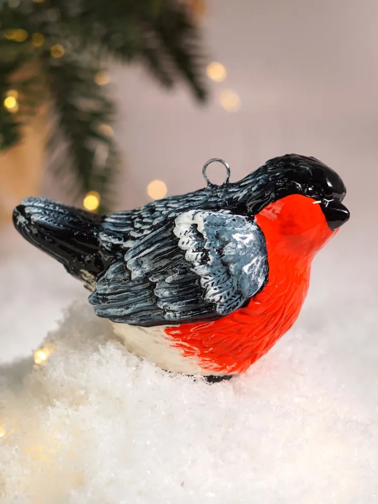 Елочное украшение из ГИПСА  "Снегирь в полете"