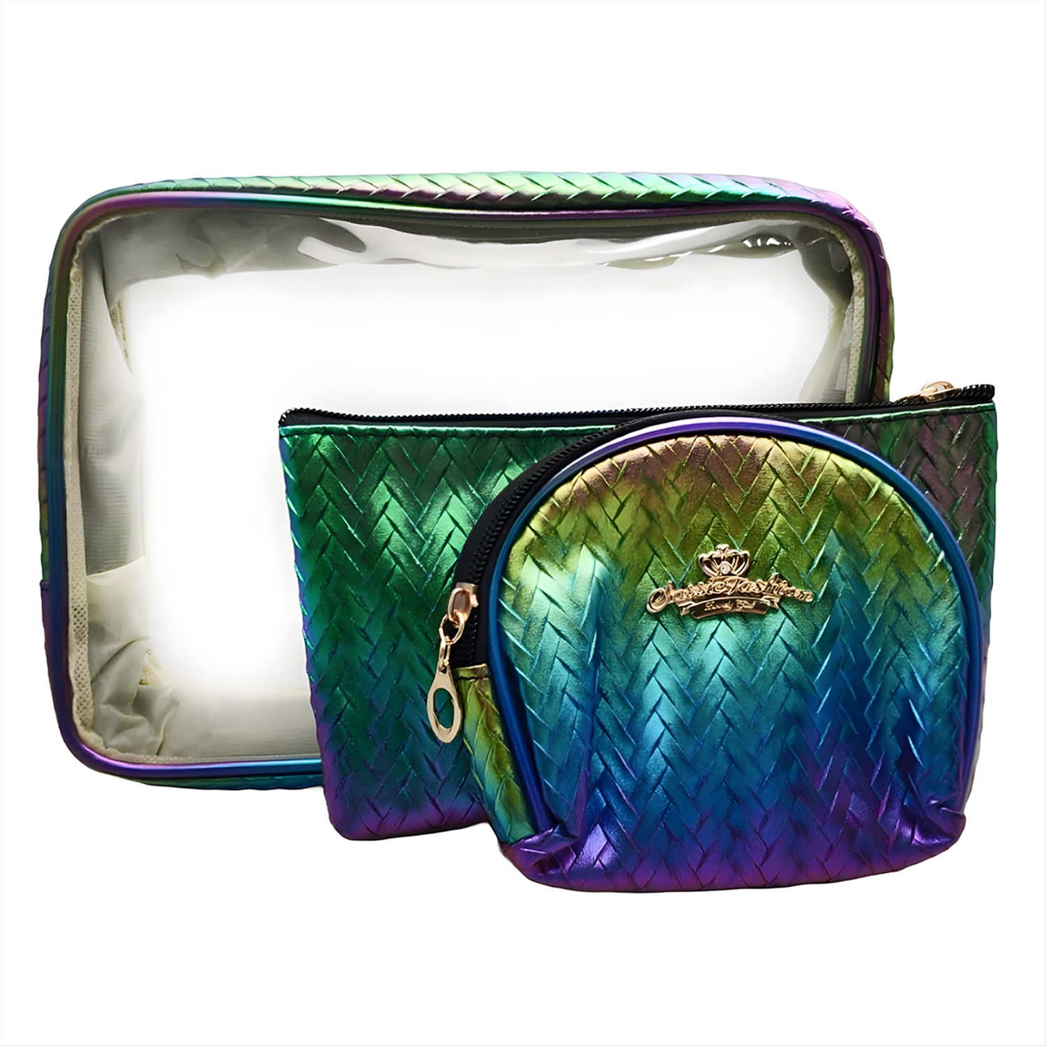 Kristaller Набор женских косметичек Chameleon Knitted rope pattern 3 in 1, сине-зеленый перламутр 6 фото