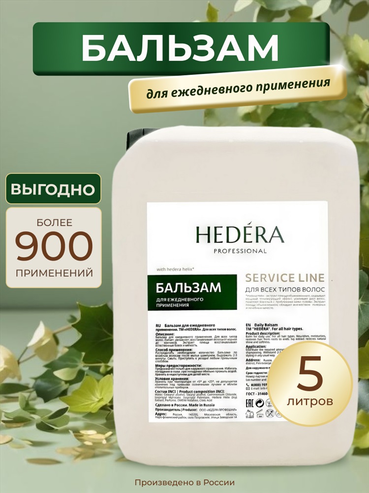 Hedera Professional Бальзам для ежедневного применения для всех типов волос / Service Line, 5000 мл 5 фото