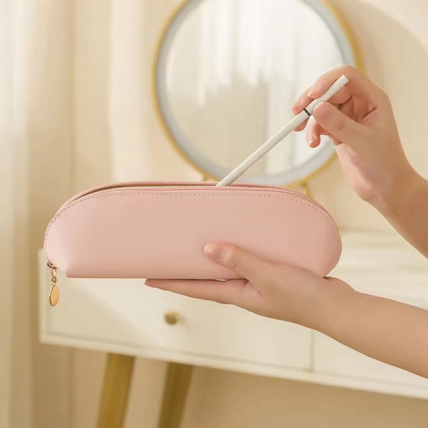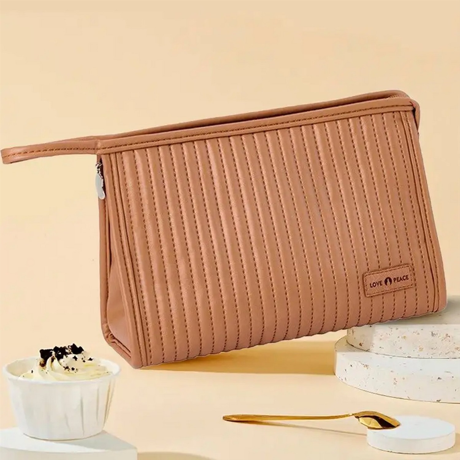 Kristaller Косметичка женская Love peace rectangular стёганая, светло-коричневый 2 фото
