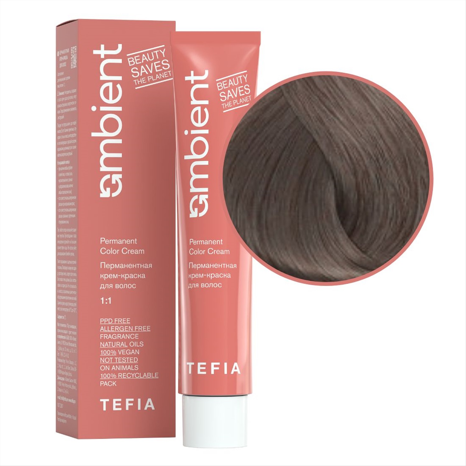 TEFIA Ambient 7.117 Перманентная крем-краска для волос / Блондин интенсивный пепельно-фиолетовый, 60 мл