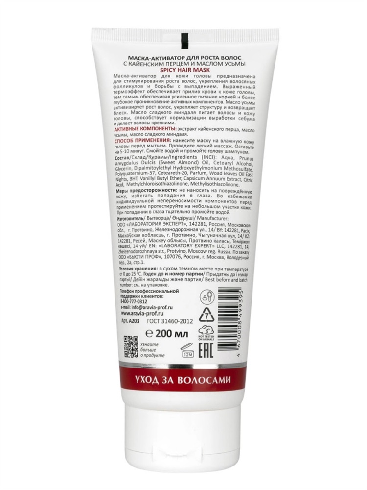 Aravia Laboratories Маска-активатор для роста волос с кайенским перцем и маслом усьмы / Spicy Hair Mask, 200 мл 3 фото