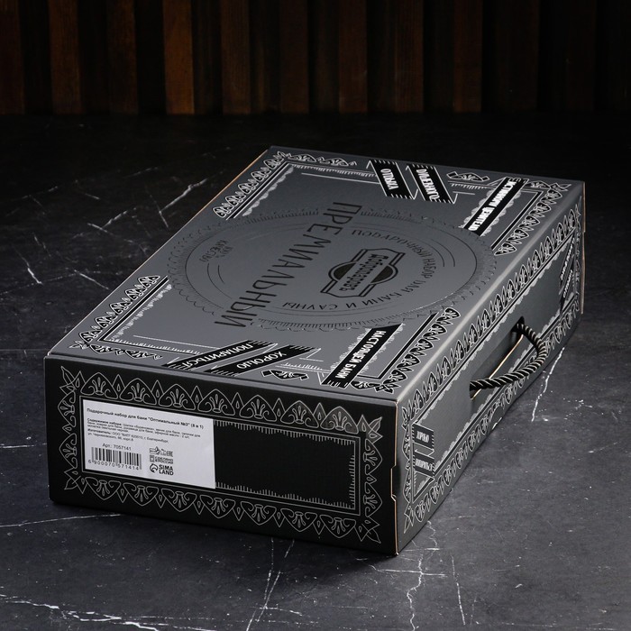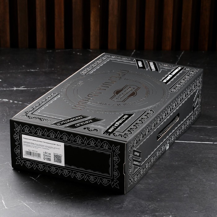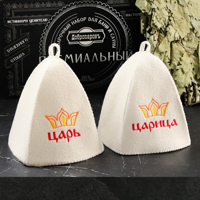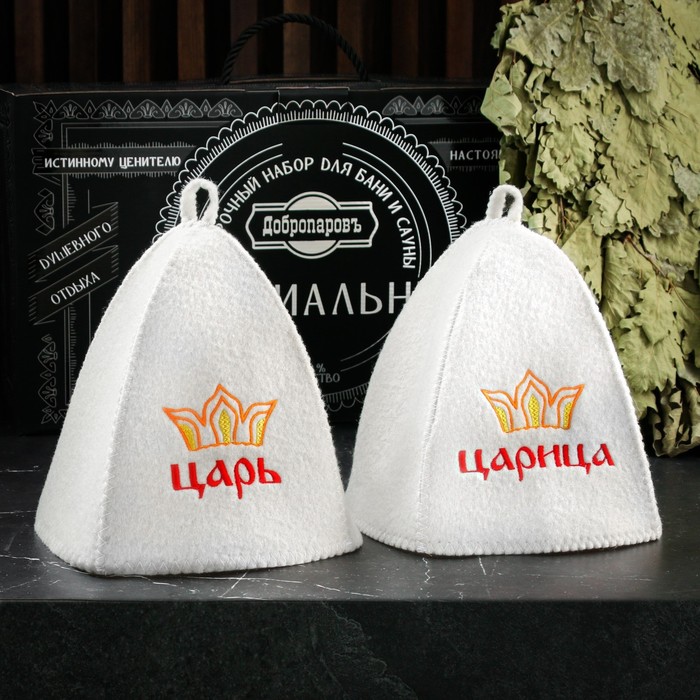 Набор для бани «Царский», 13 в 1: шапка 2 шт., веник, запарка 2 шт., масло 3 шт., шампунь, мочалка, крем, мыло, щётка, в подарочной коробке, «Добропаровъ Премиум»