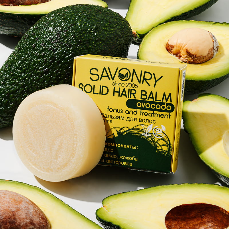 Бальзам твердый для волос АВОКАДО (тонус и терапия), 50г 4 фото