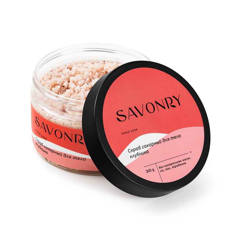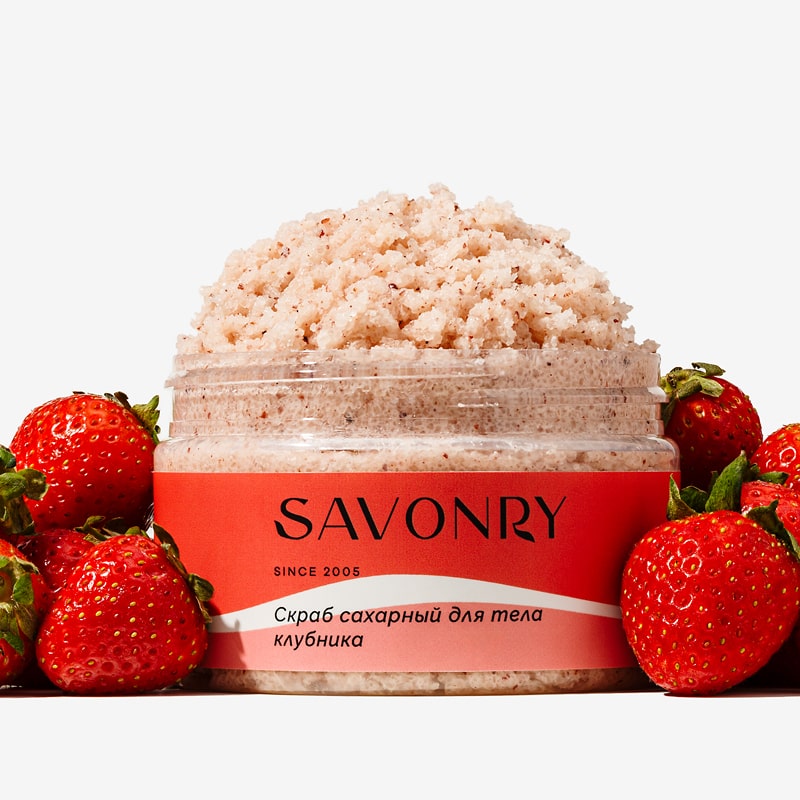 Скраб сахарный для тела КЛУБНИКА, 300г 3 фото