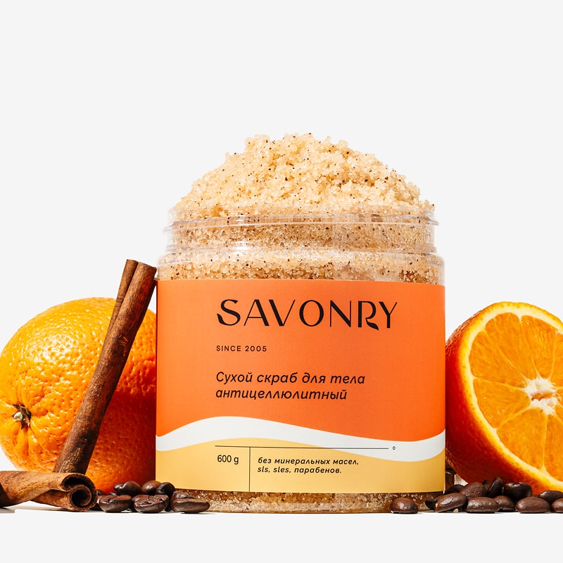 Скраб для тела АНТИЦЕЛЛЮЛИТНЫЙ (апельсин-корица-кофе), 600г 5 фото