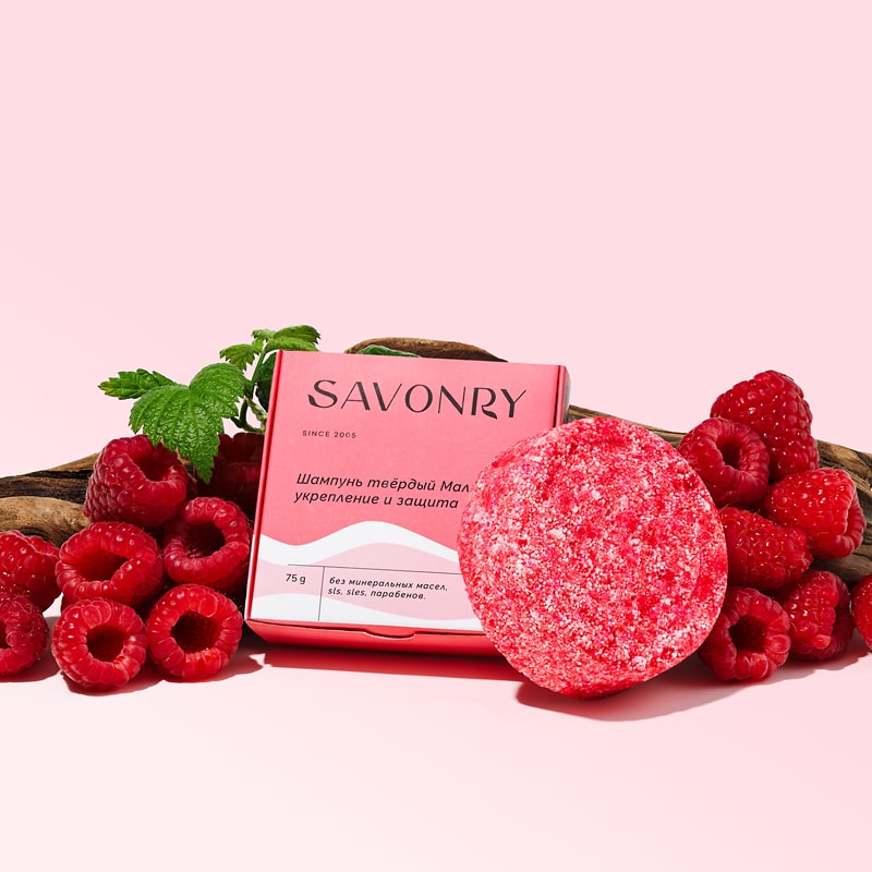 Шампунь твердый МАЛИНА (укрепление и защита), 75г 4 фото