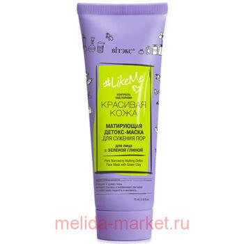 Витэкс LikeMe Контроль над порами Матирующая Детокс-Маска для сужения пор для лица с зеленой глиной, 75 мл.