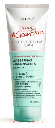Витэкс Clean Skin Маска-фольга для лица от прыщей и чёрных точек с антимикробным действием 75мл