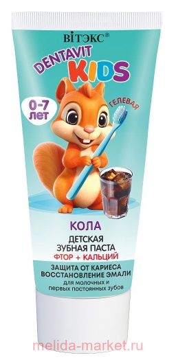 Витэкс Зубная паста Dentavit Kids фтор + кальций защита от кариеса и восстановение эмали кола детская гелевая 65гр