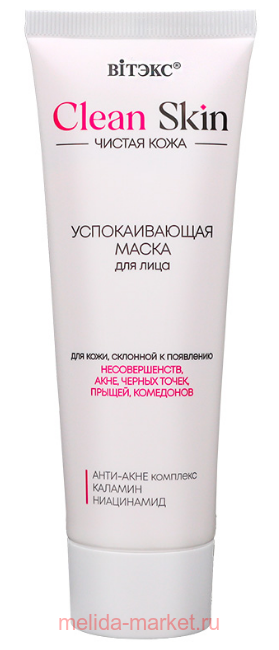 Витэкс Clean Skin Успокаивающая Маска для лица с Анти-акне комплексом и каламином Чистая кожа 75 мл