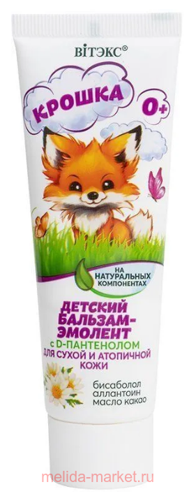 Витэкс Крошка Бальзам-эмолент детский на натуральных компонентах с D-пантенолом для сухой и атопичной кожи 50мл