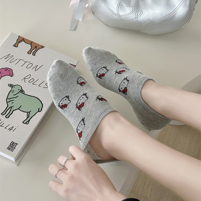 Japanese cartoon cat jacquard boneless socks for women cotton age-reducing versatile silicone anti-slip and shallow mouth invisible socks