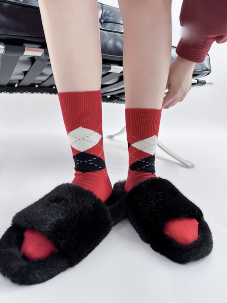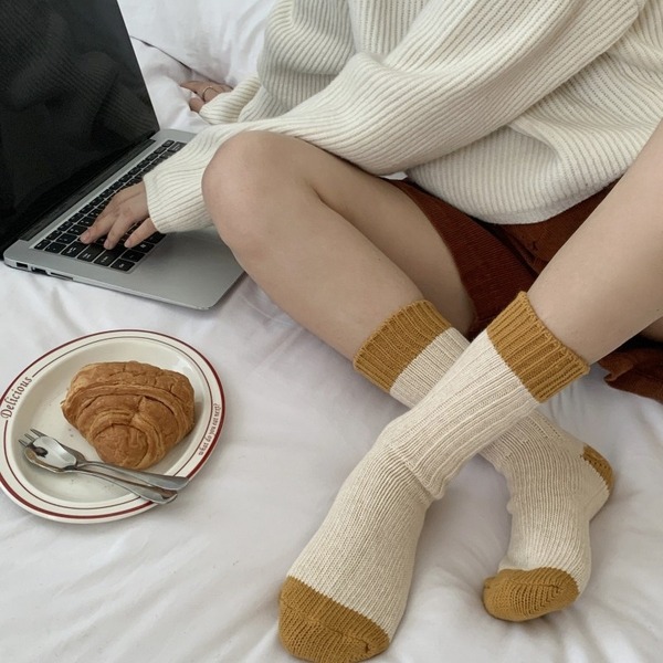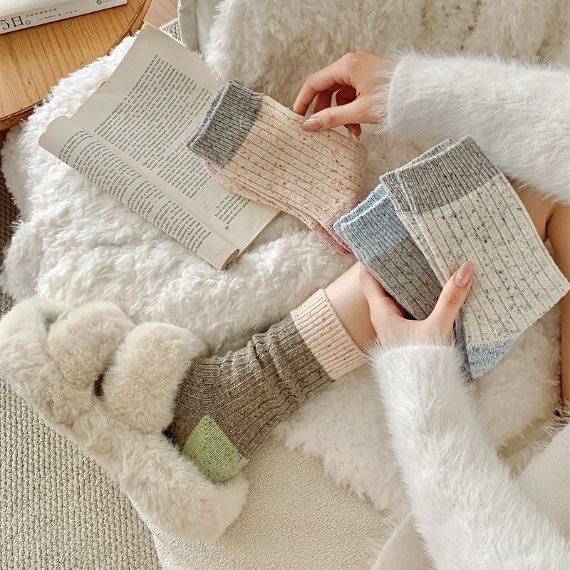Mink velvet dot yarn thick line striped socks for women thickened warm Korean ins contrasting color dot yarn medium tube stack socks