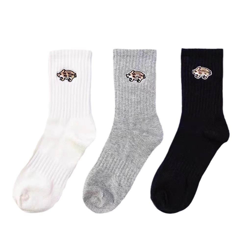 Sports cotton cartoon colored trend knee socks for men and women, Japanese version, with embroidery, mid-length