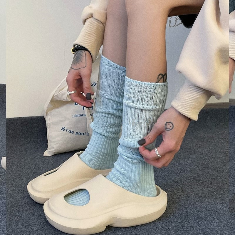 Spring and summer new Japanese solid color coarse lines and knee socks and calf socks jk sweet double -pin pile socks ins socks