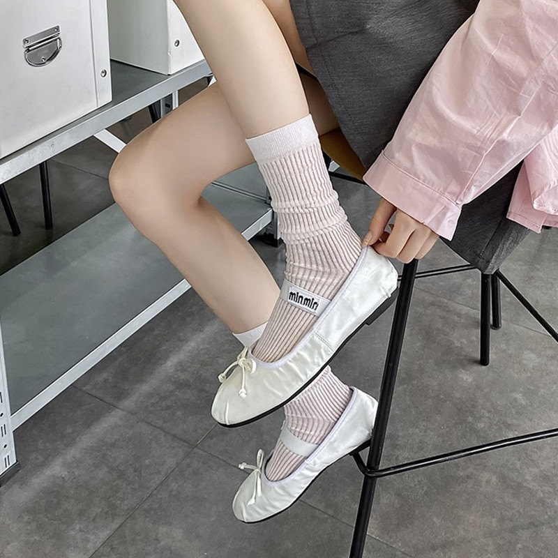 Songmu's thin and translucent Fair Island Korean ins blogger same style pile socks solid color sweet bow socks for women