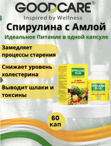 СПИРУЛИНА ПЛЮС С АМЛОЙ (GOODCARE SPIRULINA PLUS WITH AMLA) ,60  капсул 2 фото