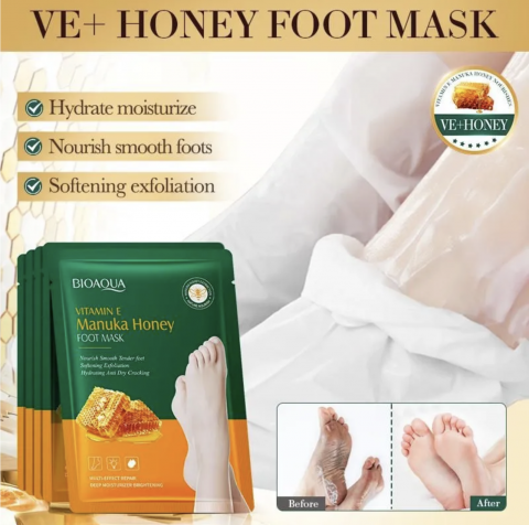 BIOAOUA Маска-носочки Питательная для ног с витамином Е и медом мануки, 35 мл