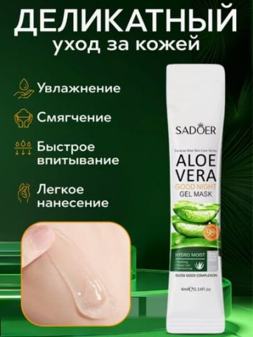 Увлажняющая ночная несмываемая гель маска для лица с 98% алое вера Sadoer Aloe Vera Good Night Gel Mask 4ml