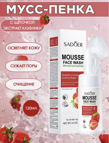 SADOER Очищающий мусс с щеточкой с аминокислотами Клубника, 120 мл