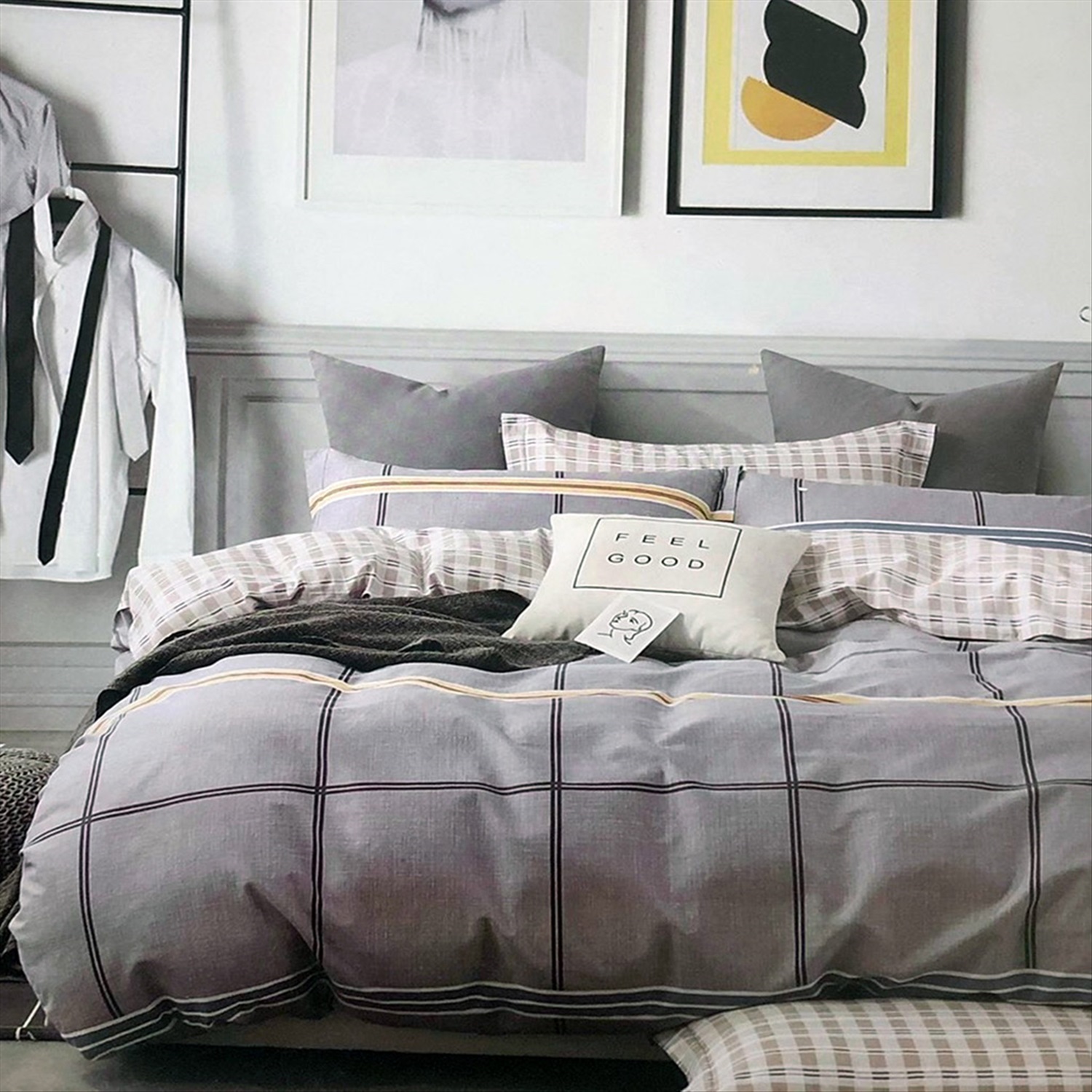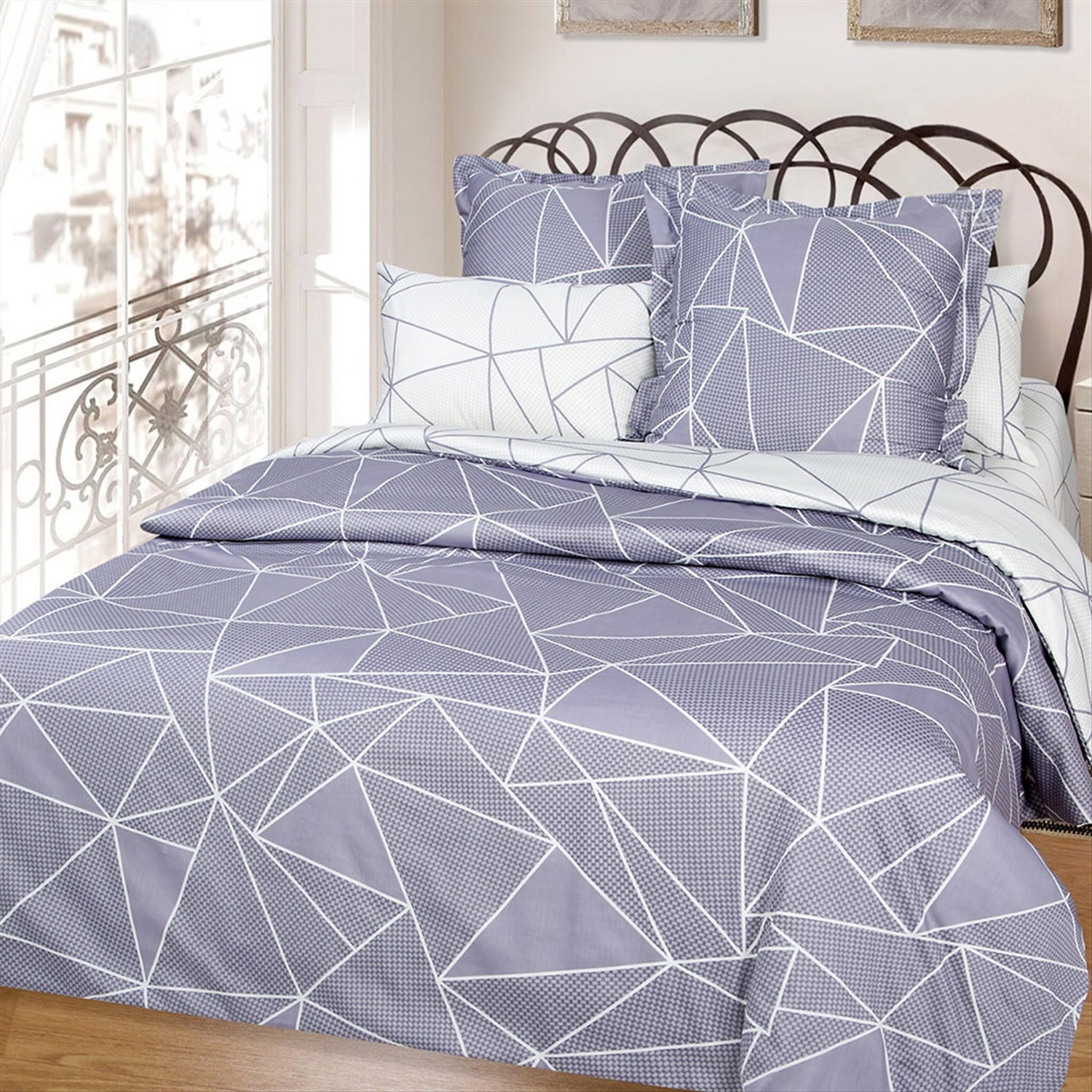 Постельное белье, комплект 1,5 спальный "Иллюзия, серый", 4 предмета: пододеяльник на кнопках 145х215см, простыня 150х220см, 2 наволочки 70х70см с клапаном-запахом, поплин "Комфорт" 115г/м2, хлопок 100%, упаковка "классическая" ПВХ 32х41см, "Домашняя